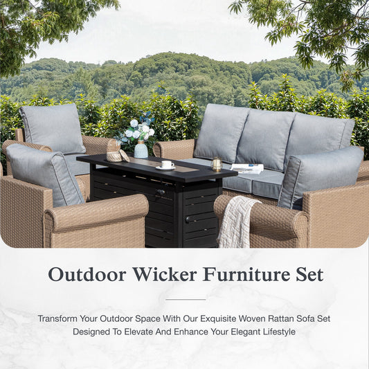 Sophia & William 8 Pieces Wicker Patio Converation Set with Fire Pit Table, Beige