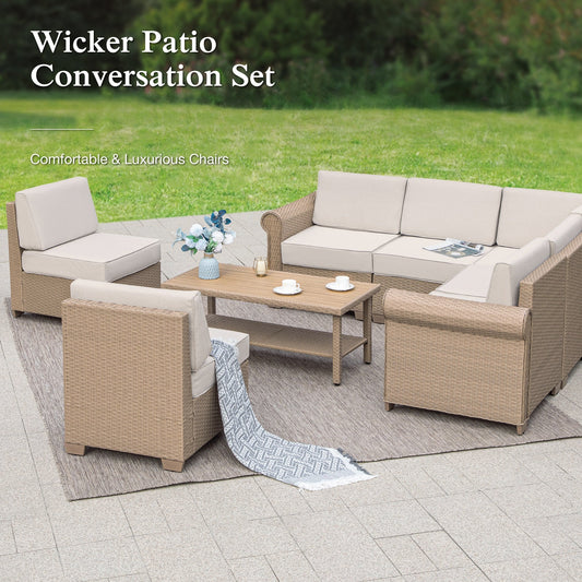 Sophia & William 8 Pieces Wicker Patio Furniture Set 7-Seat Outdoor Conversation Set with Coffee Table, Beige