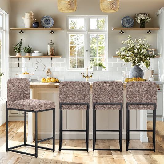 Sophia & William Counter Height Bar Stools with High Backrest 4 Pack Soft & Durable Chenille Fabric Bar Stools for Kitchen Island, Brown