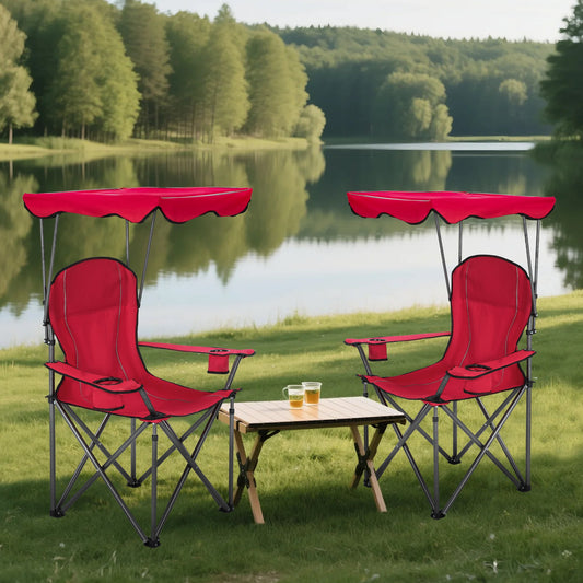 Sophia & William Foldable Canopy Chair Portable Camping Lounge Chair Outdoor Sunshade Canopy Chair with Cup Holder, 2 Pack, Red