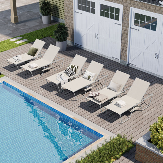 Sophia & William Patio Adjustable Lounge Chair 27.2" Wider Metal Recliner Outdoor Chaise Lounge with Sotrage, Set of 2