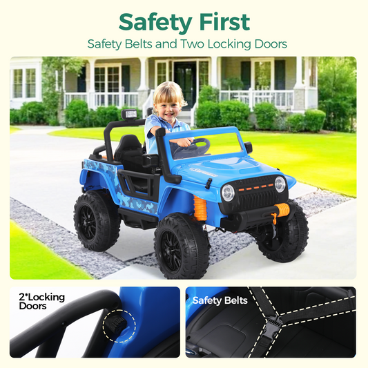 Alpha Joy 2-Seater Kids Ride on Truck 24V Electric Jeep Car with Remote Control Battery Powered Toy Car w/2 Speeds, LED Lights, Detachable Spotlights, Bluetooth Music, Blue