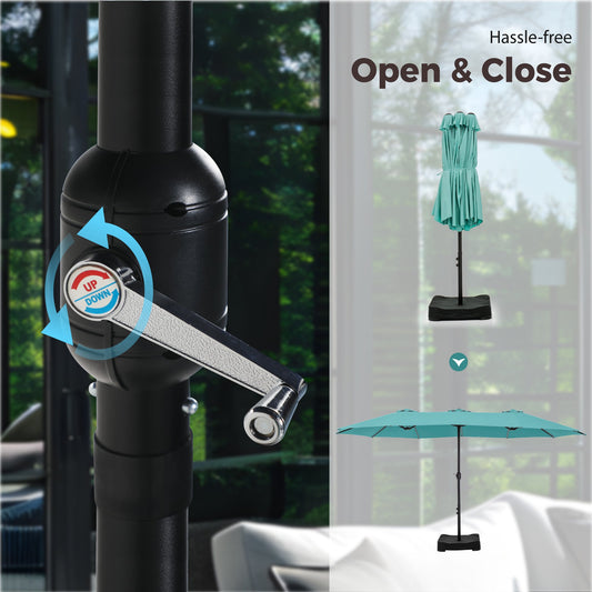Alpha Joy 15ft Outdoor Patio Umbrella Extra-Large Double-Sided Garden Umbrella with Crank Handle and Base - Turquoise
