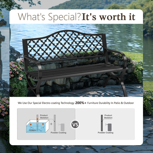 50" Black Outdoor Park Bench with Stylish Camelback Back Frame, Durable & Comfortable