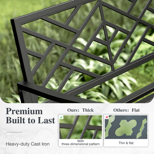 Alpha Joy Outdoor Bench 2-Person Metal Patio Garden Bench for Lawn, Park, Geometric