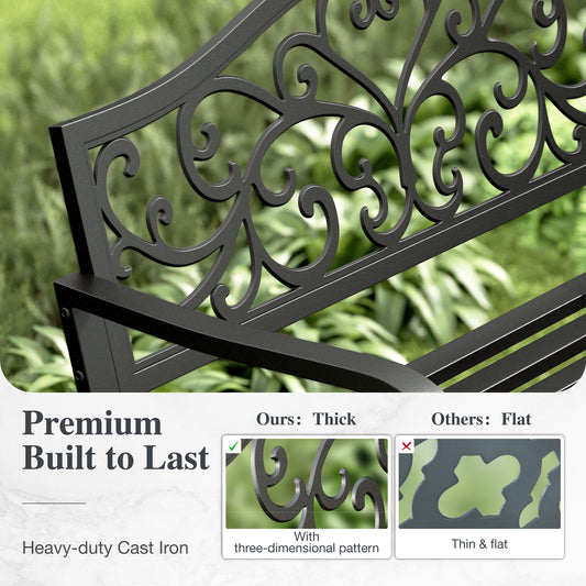 Alpha Joy Outdoor Bench 2-Person Metal Patio Garden Bench for Lawn, Park, Flower