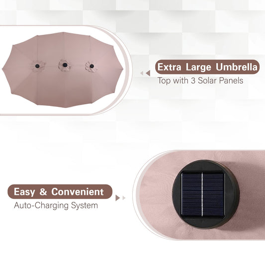 Sophia & William 15ft Patio Umbrella with Lights (Base Included), Extra Large Outdoor Double-sided Umbrella, Navy
