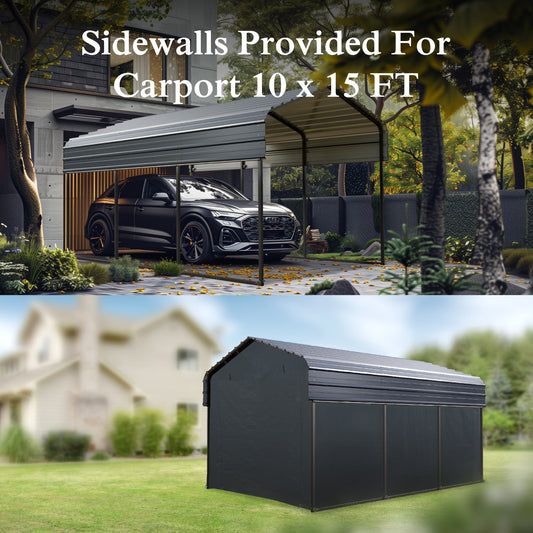 Alpha Joy 10' x 15' Heavy Duty Galvanized Steel Carport with Side Walls Multi-Purpose Storage Shelter