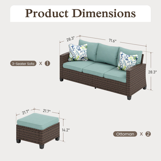 Sophia & William 3 Pieces Wicker Patio Furniture Set Outdoor Couch with 2 Ottomans and Blue Cushions