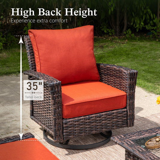 Sophia & William 3 Pieces Swivel Bar Set Rattan Backrest and Padded Cushion Bar Chair & Square Metal Table