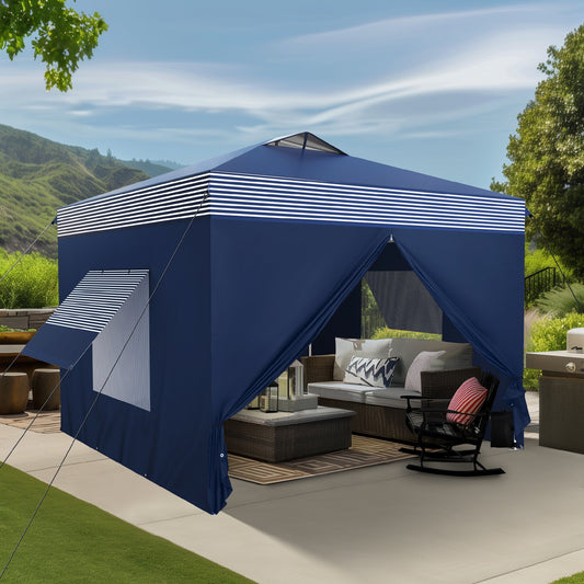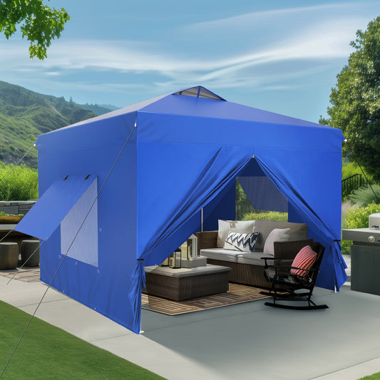 Alpha Joy 10'x 10' Instant Canopy Outdoor Ez Up Outdoor Canopy Shelter Tent with 4 Side Walls, Blue