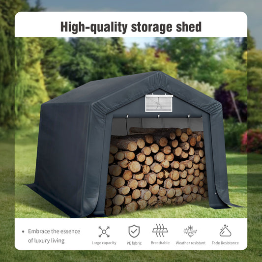 Alpha Joy 10 x 15 x 8.7 ft Portable Storage Shed Outdoor Heavy Duty Carport with Roll-up Ventilated Windows for Patio Furniture