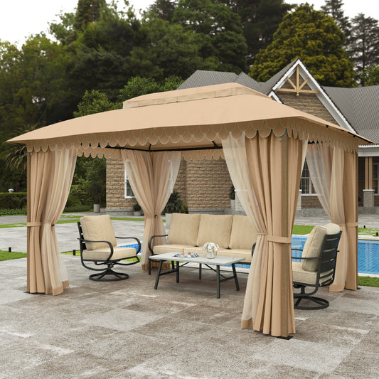 Alpha Joy 10'x13' Outdoor Gazebo Ventilated Double Roof Metal Gazebo with Mosquito Netting and Privacy Curtains for Patio, Backyard, Deck and Lawn, Beige