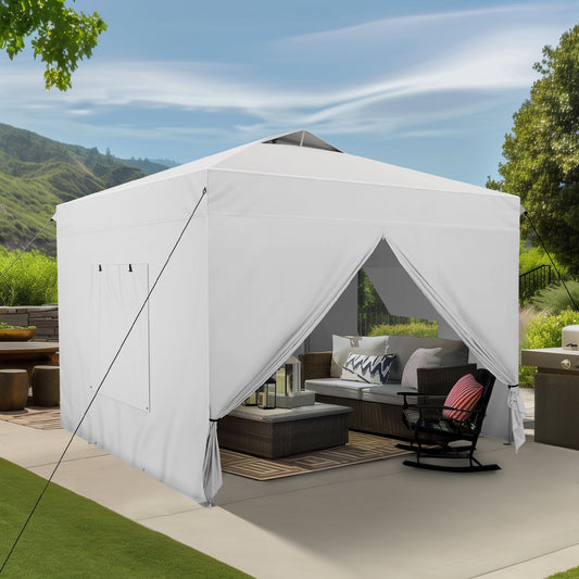 Alpha Joy 10'x 10' Instant Canopy Outdoor Ez Up Outdoor Canopy Shelter Tent with 4 Side Walls, White