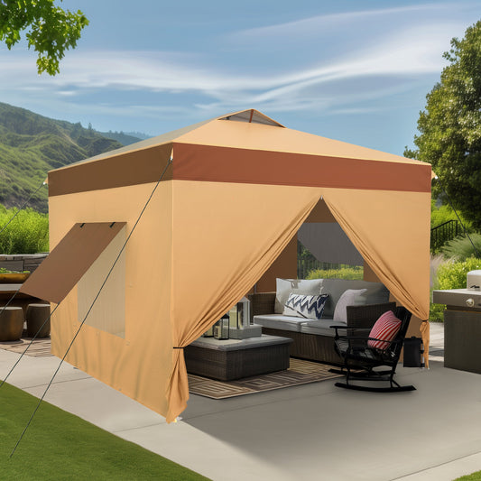 Alpha Joy 10'x 10' Instant Canopy Outdoor Ez Up Outdoor Canopy Shelter Tent with 4 Side Walls, Beige