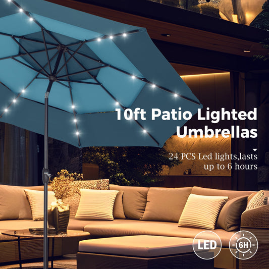 Alpha Joy 10ft 3 Tier Auto-tilt Outdoor Patio Umbrella Beach Garden Double Vented Table Umbrella with Solar Lights, Peacock Blue & Cerulean