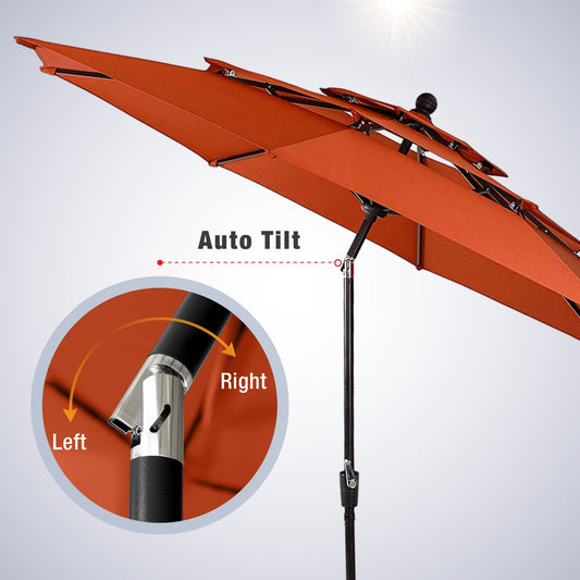 Alpha Joy 10ft 3 Tier Auto-tilt Outdoor Patio Umbrella with Push Button Tilt and Crank, Orange Red