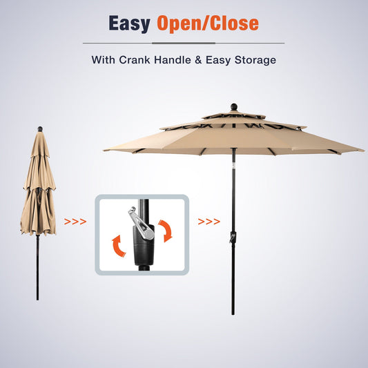 Alpha Joy 10ft 3 Tier Auto-tilt Outdoor Patio Umbrella with Push Button Tilt and Crank, Beige