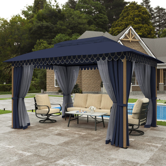 Alpha Joy 10'x13' Outdoor Gazebo Ventilated Double Roof Metal Gazebo with Mosquito Netting and Privacy Curtains for Patio, Backyard, Deck and Lawn, Navy