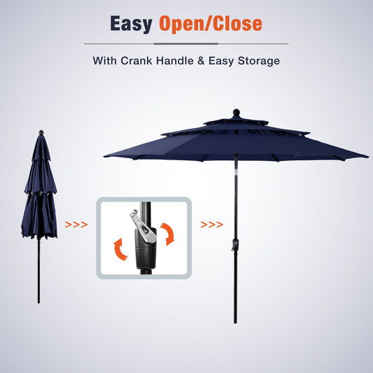 Alpha Joy 10ft 3 Tier Auto-tilt Outdoor Patio Umbrella Beach Garden Double Vented Table Umbrella with Push Button Tilt and Crank,Navy Blue