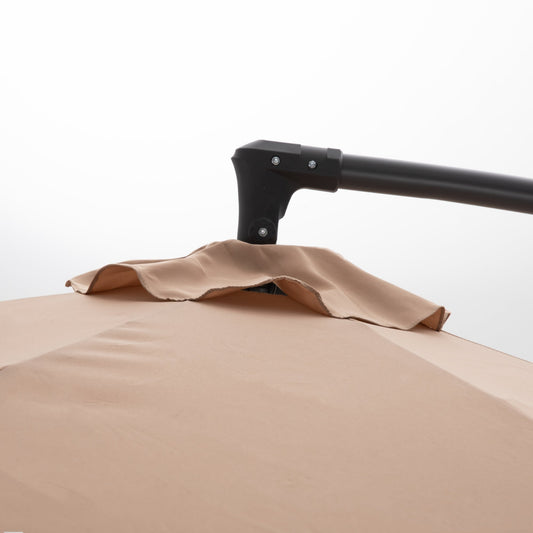 Alpha Joy 10ft Outdoor Patio Offset Market Hanging Umbrella with 8 Steel Ribs & Cross Base(No Weight), Beige