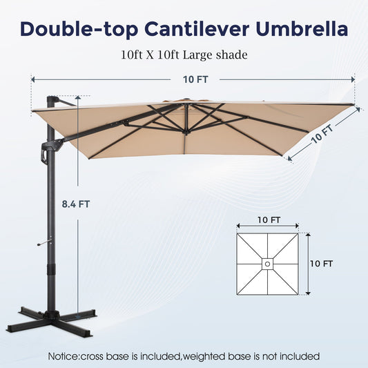 Alpha Joy 10x10ft Outdoor Patio Large Square Cantilever Double Umbrella with 360° Rotation, Beige