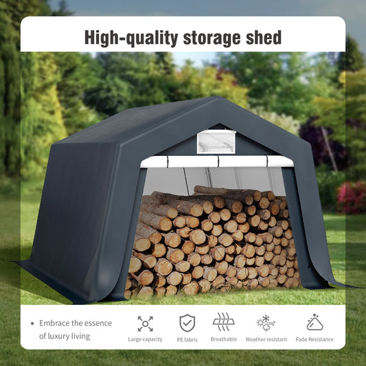 Alpha Joy 12 x 14 x 9.1 ft Portable Storage Shed Outdoor Heavy Duty Carport with Roll-up Ventilated Windows for Patio Furniture