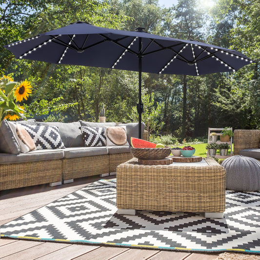 Alpha Joy 13ft Large Double-Sided Outdoor Patio Umbrella with Colorful Solar Lights, Navy Blue