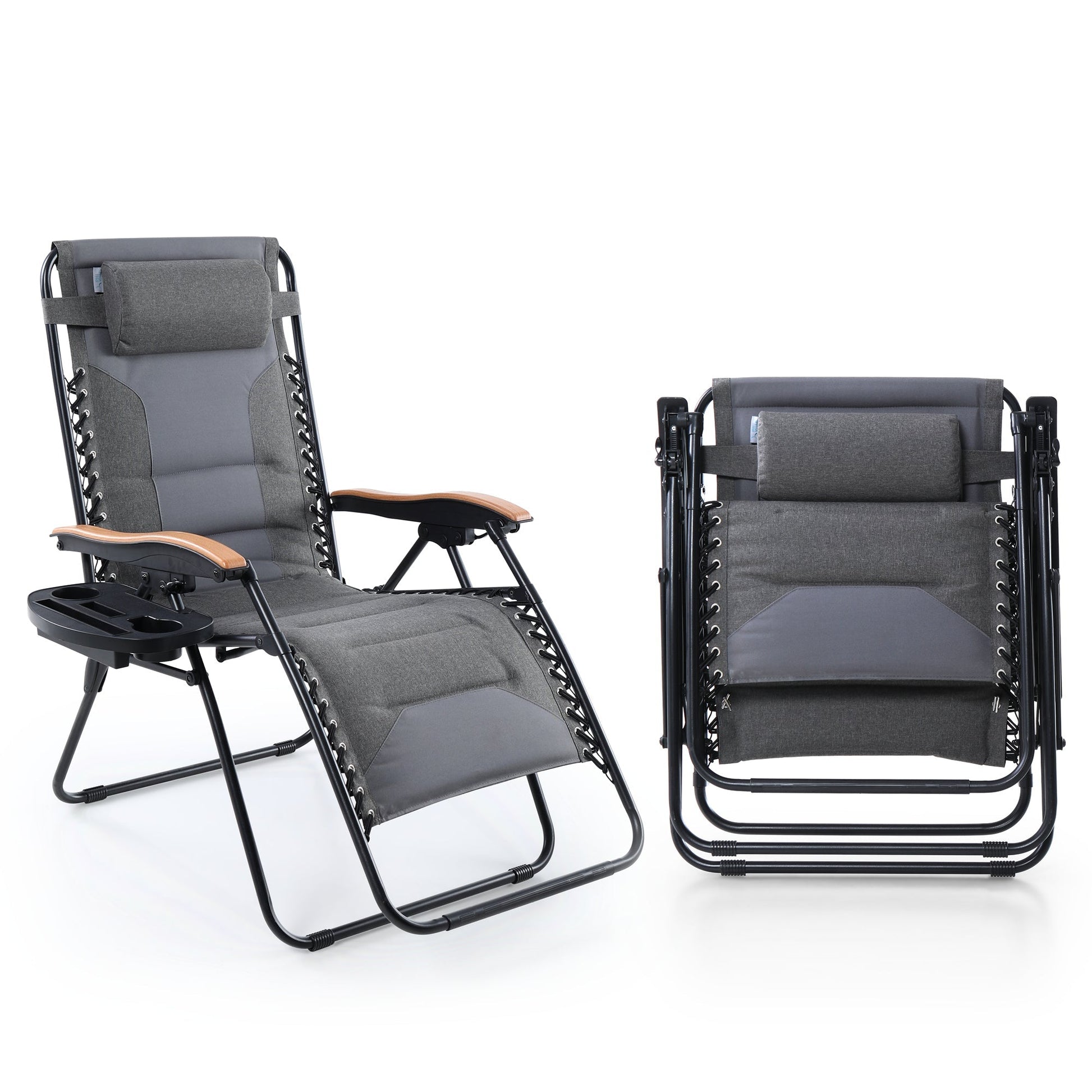 Sophia&William 2 Pieces Outdoor Oversized Padded Zero Gravity Chairs - Grey