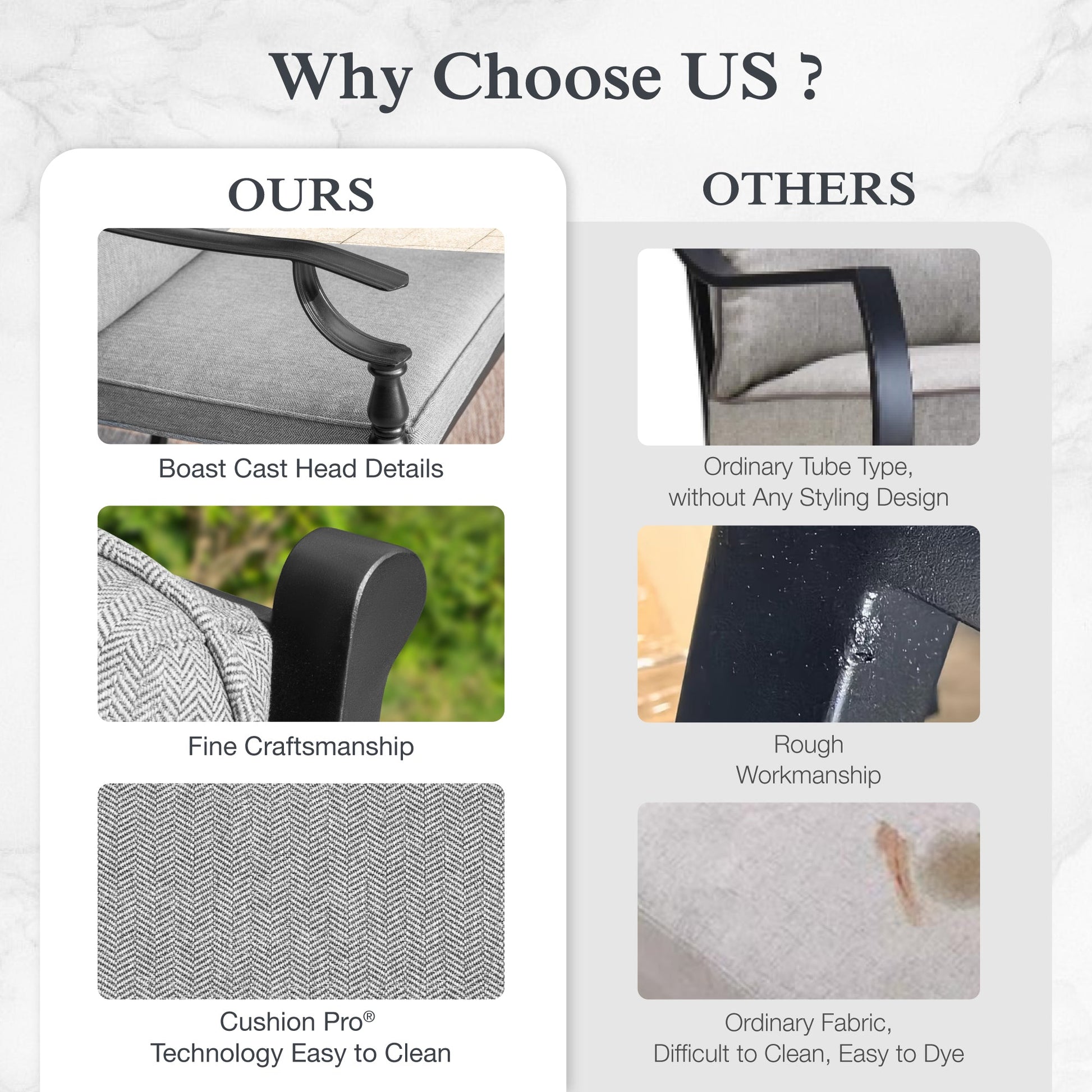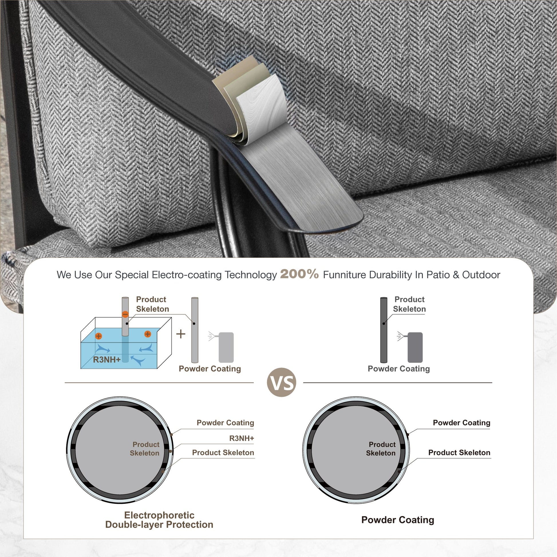 ¡¾E-coating Steel Frame¡¿: This outdoor dining chair is constructed with a durable heavy-duty steel frame that utilizes e-coating and powder-coating methods to resist rust and corrosion. It is easy to clean and does not need any special maintenance. The chair is designed to accommodate most individuals and can support up to 300 lbs, ensuring both reliability and comfort for outdoor dining.