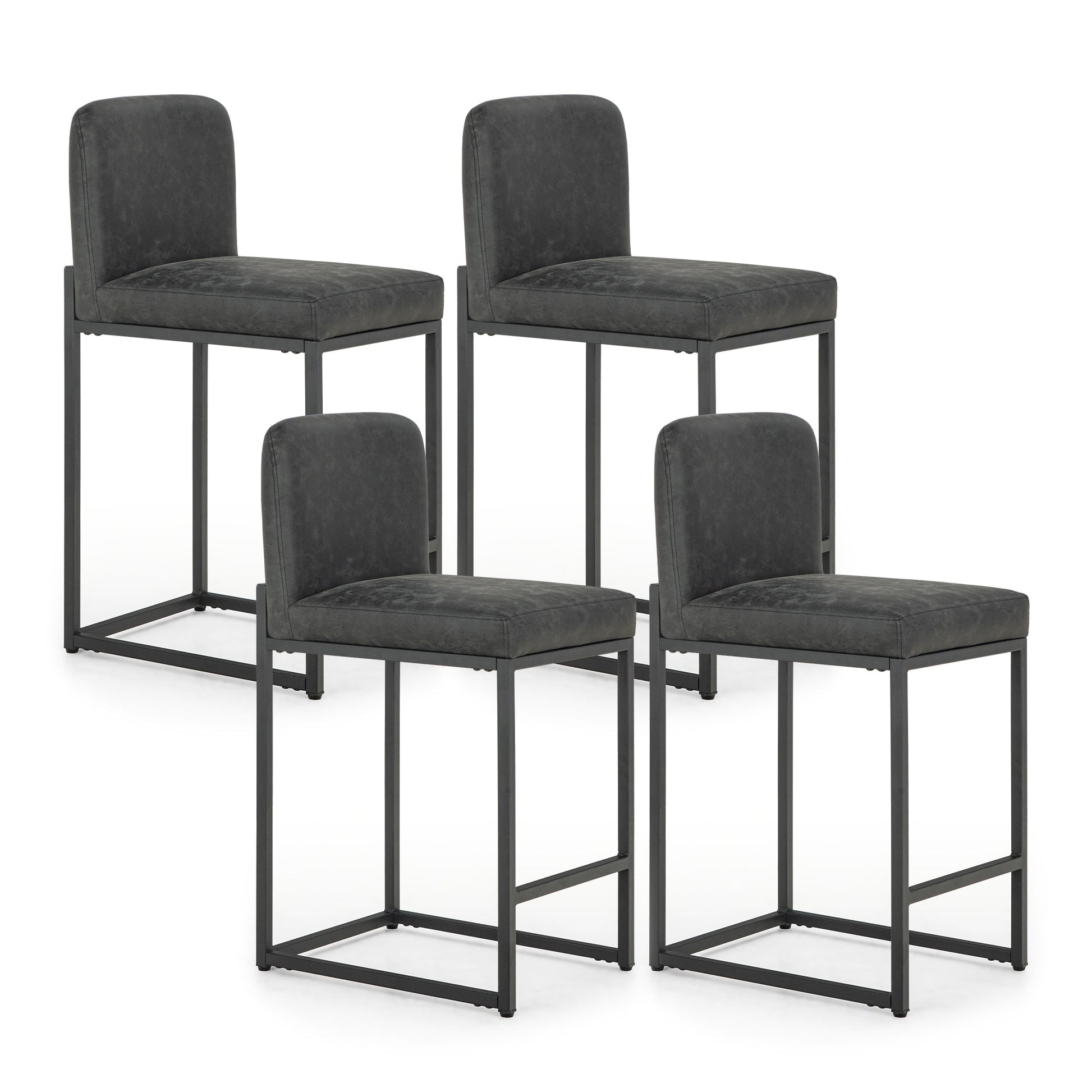 Revitalize your kitchen, bar, or workspace with these ultra-sturdy counter-height stools, expertly crafted for durability and everyday comfort. Built with a matte black powder-coated steel frame and an extended metal base, they deliver unmatched stability for busy restaurants, bustling kitchens, or lively home gatherings. The easy-clean faux leather upholstery wraps a high-density sponge cushion that retains its shape for years, while the skin-friendly surface and ergonomic design ensure all-day comfort. From 34" breakfast bars to 88" pub tables, these stools blend industrial strength with sleek modern style.