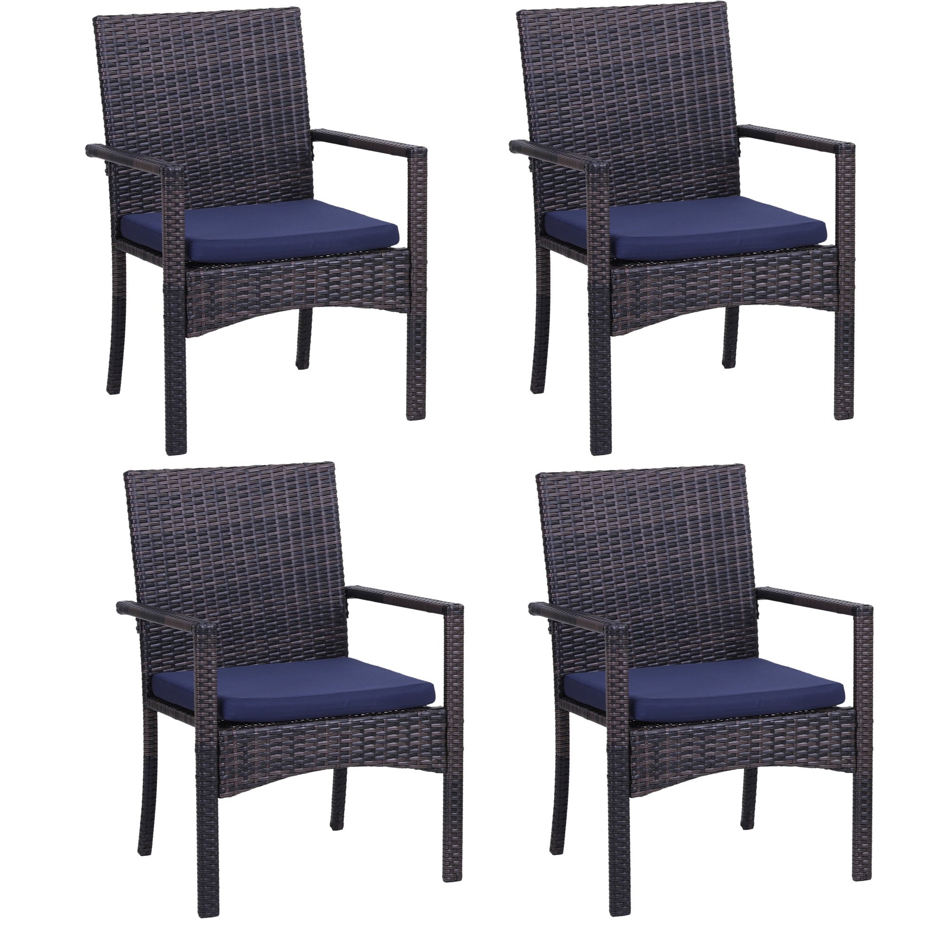 Sophia & William Patio Rattan Dining Chairs Set of 4 with Blue Cushions