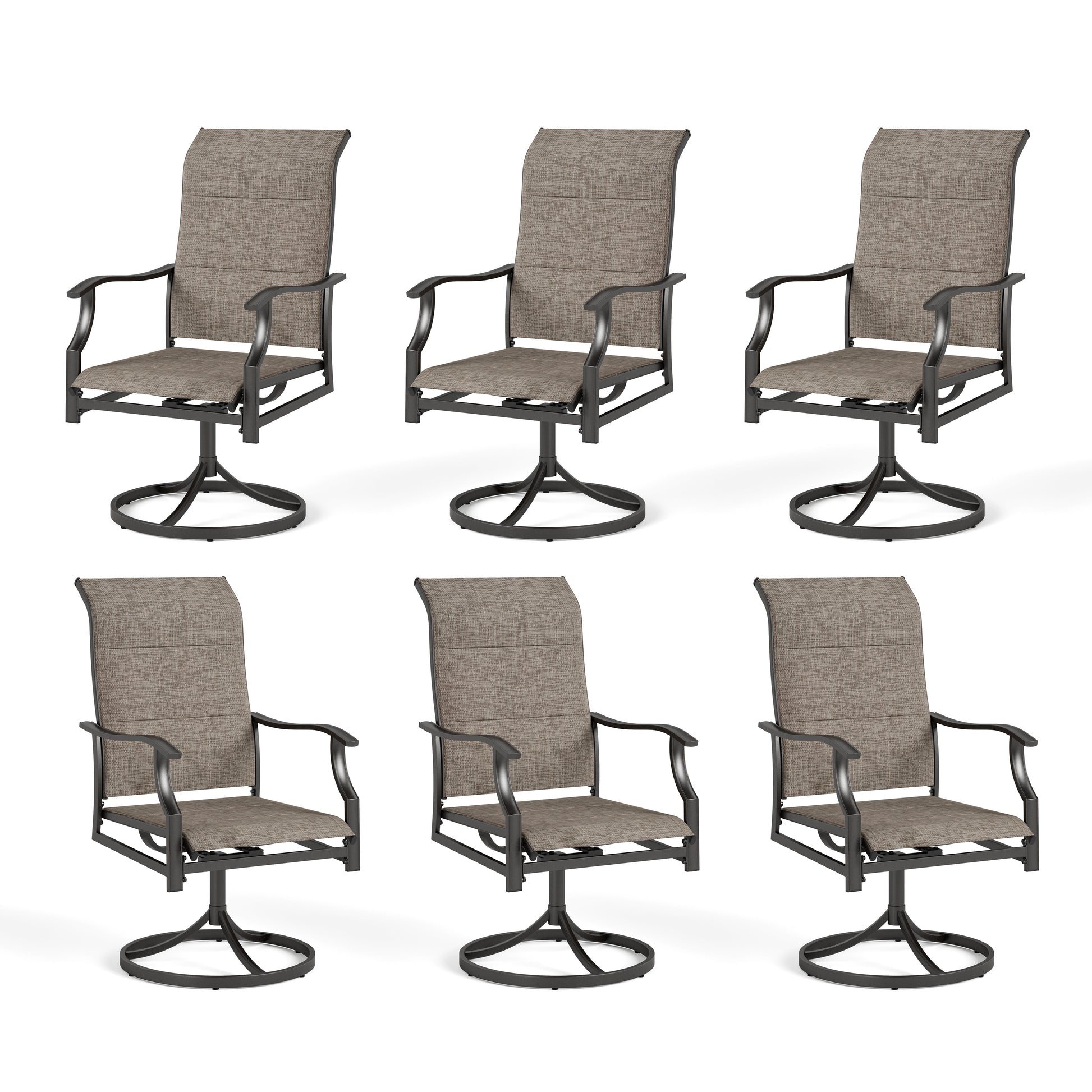 Sophia & William 6Pcs Outdoor Patio Dining Swivel Padded Textilene Chairs, Ash Brown
