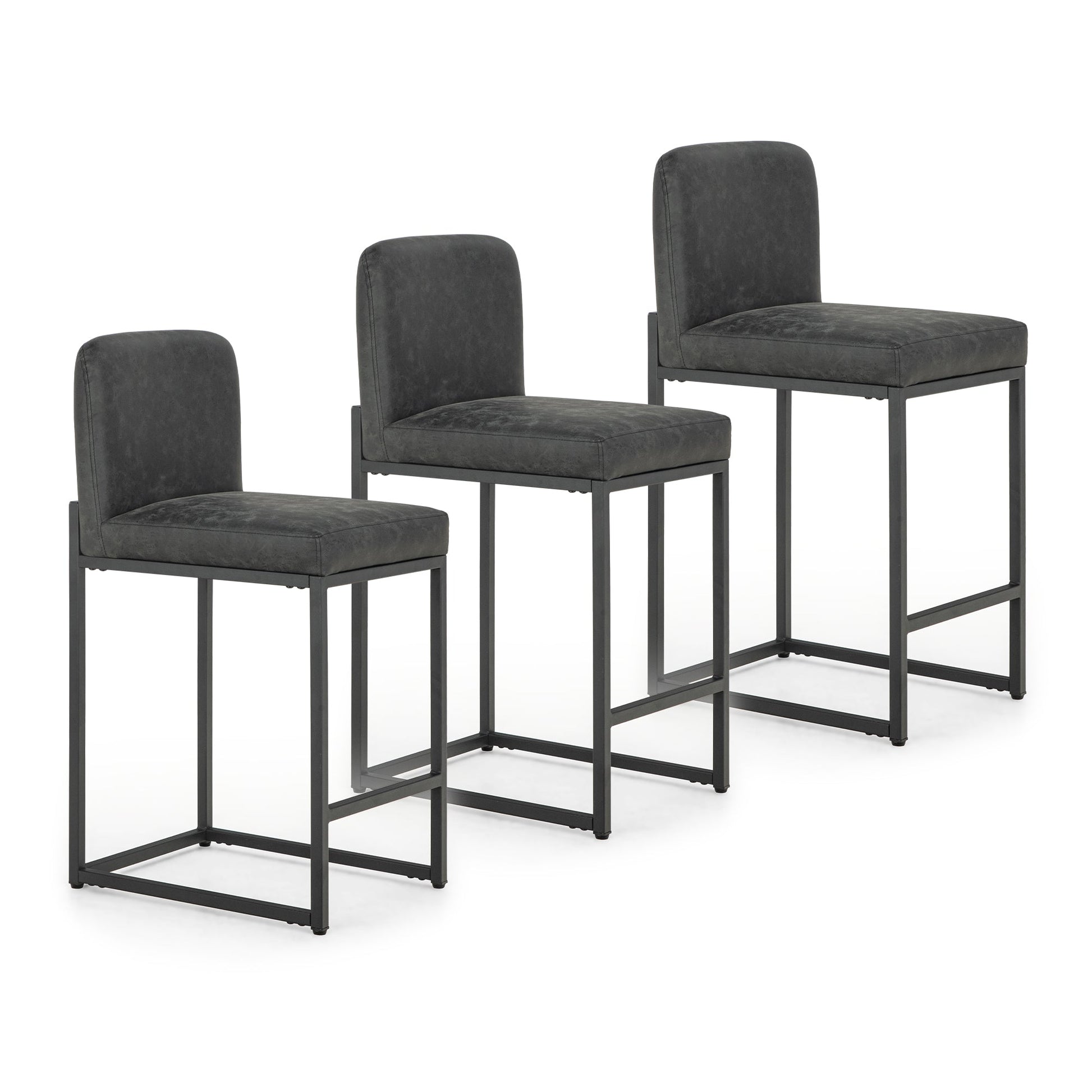 Revitalize your kitchen, bar, or workspace with these ultra-sturdy counter-height stools, expertly crafted for durability and everyday comfort. Built with a matte black powder-coated steel frame and an extended metal base, they deliver unmatched stability for busy restaurants, bustling kitchens, or lively home gatherings. The easy-clean faux leather upholstery wraps a high-density sponge cushion that retains its shape for years, while the skin-friendly surface and ergonomic design ensure all-day comfort. From 34" breakfast bars to 88" pub tables, these stools blend industrial strength with sleek modern style.