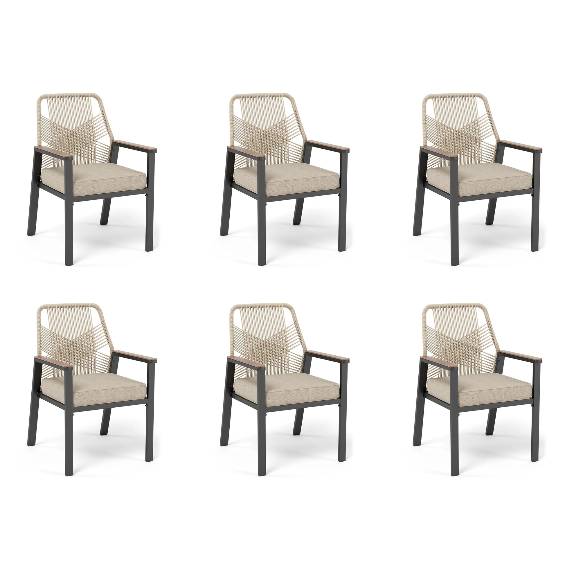 Sophia & William 6Pcs Outdoor Patio Rattan Dining Chairs with Metal Frame, Beige Cushion