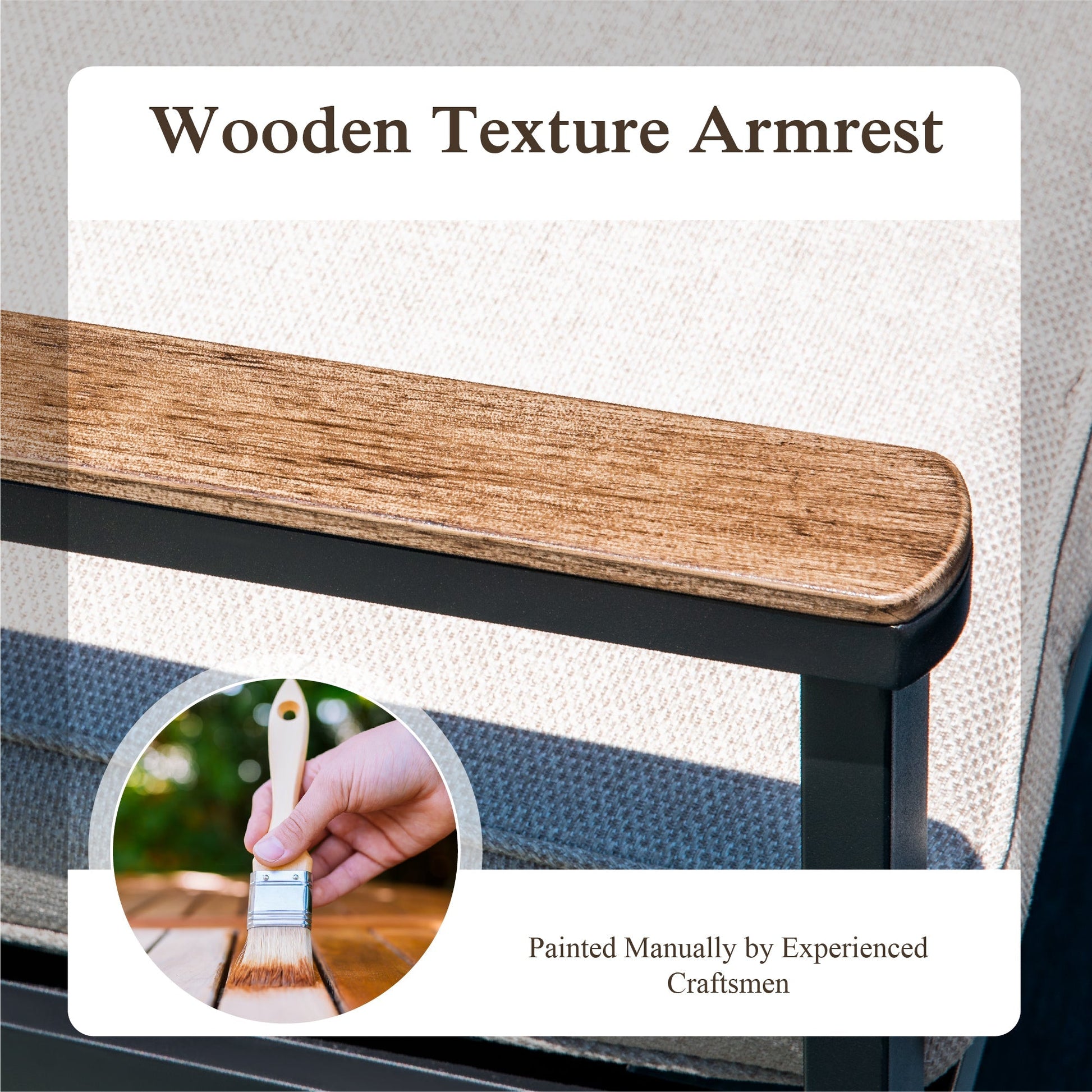 ¡¾Unique Armrests Design¡¿- Chair armrests are hand-brushed with a kind of woodlike finish, providing a natural feel that blends seamlessly with outdoor settings.