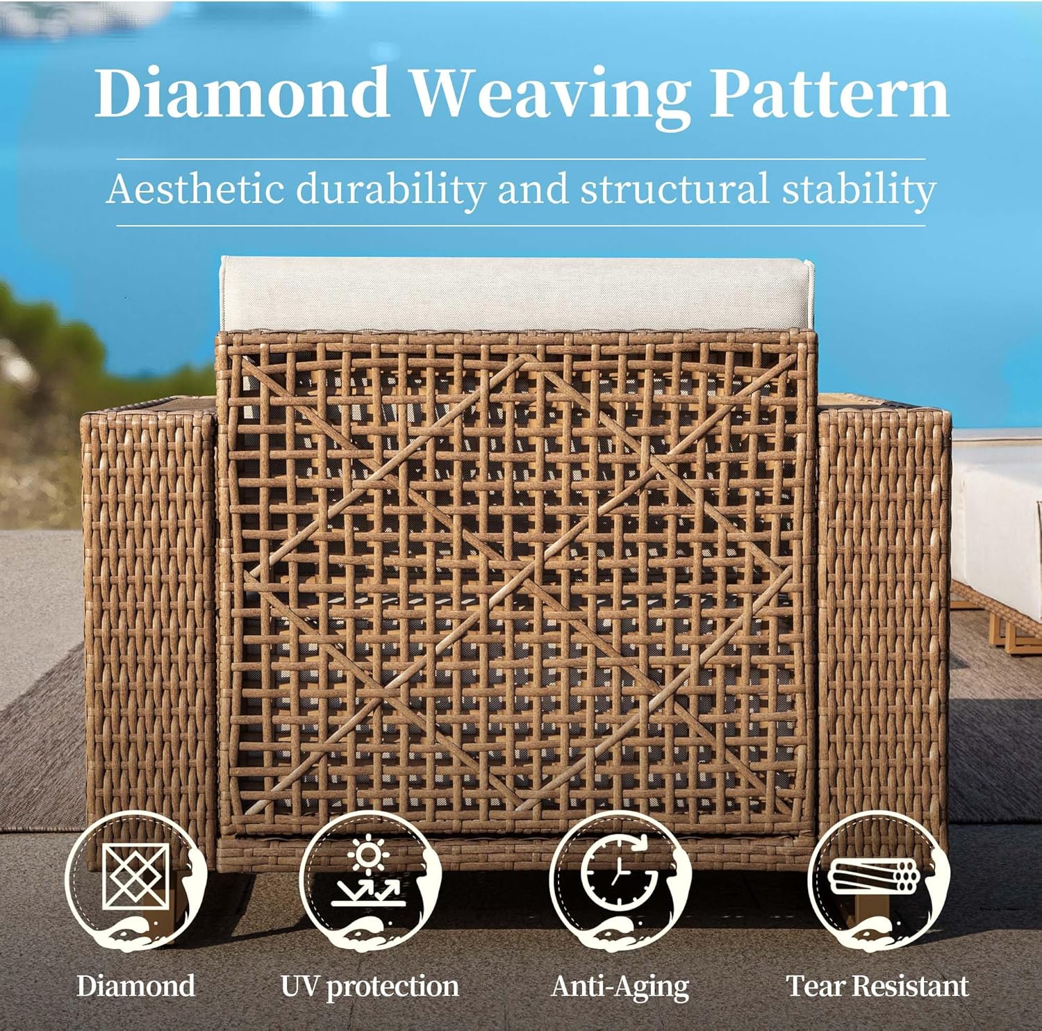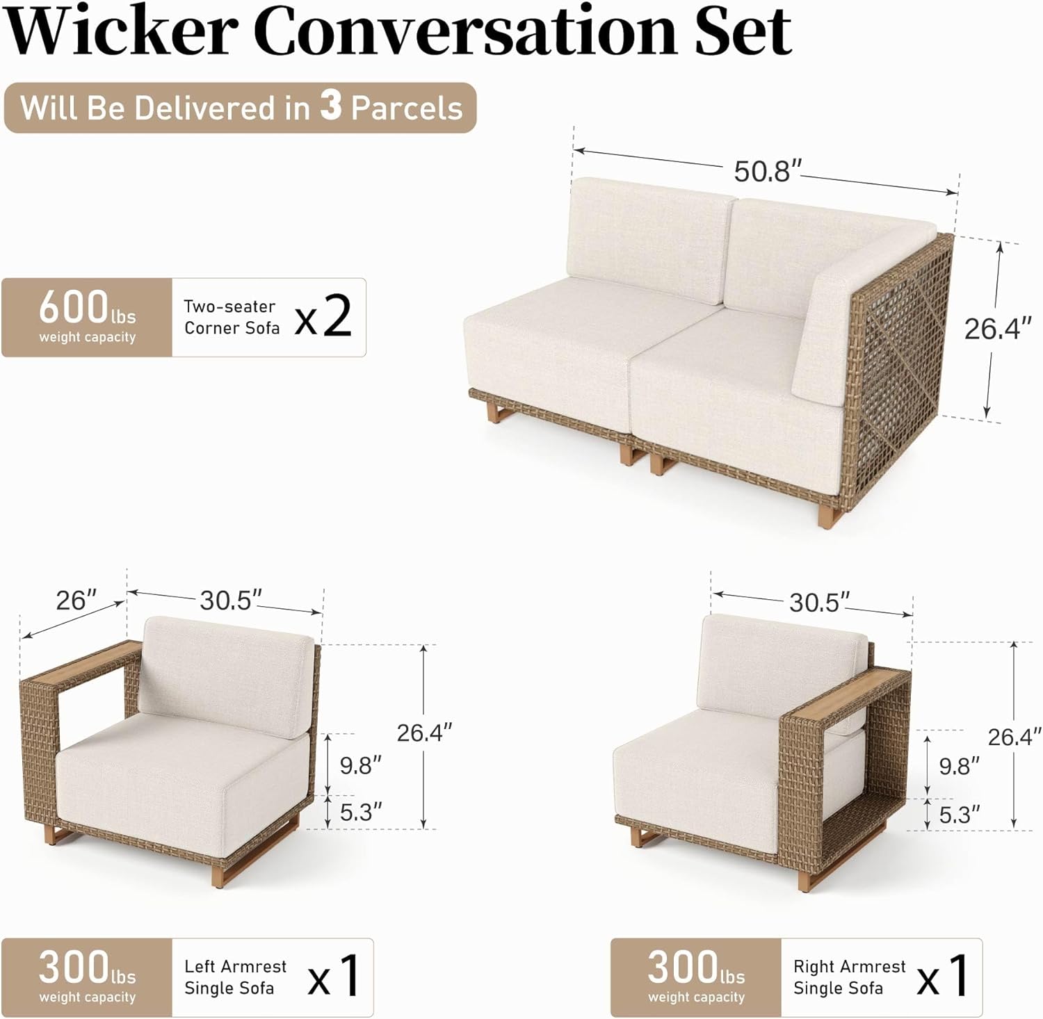 · Wicker King Rattan: The premium rattan has 100% UV protection and is reinforced on both edges, which is 25% thicker than normal rattan and extends the life of the rattan. Our sofa is designed with durable rattan woven seating, which enhances longevity by 20%, ensuring it stands the test of time