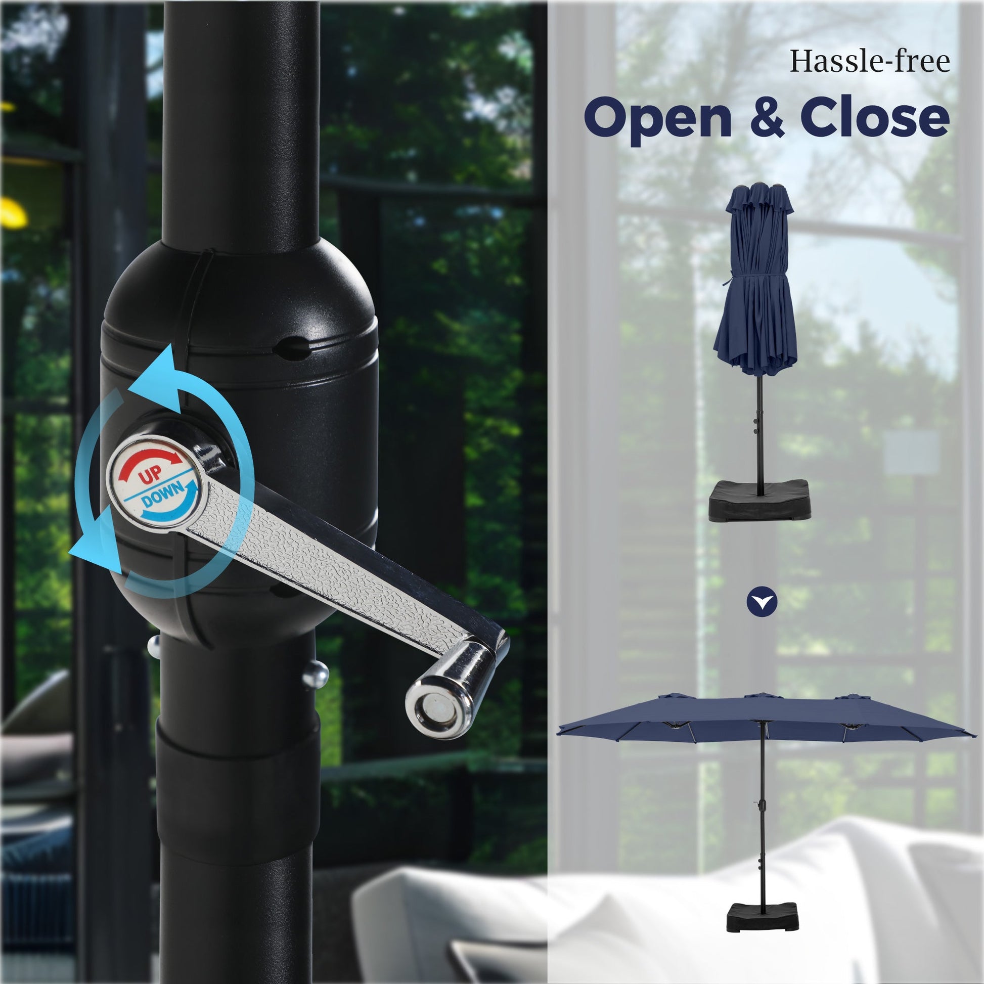 ¡¾Sturdy Construction¡¿: The umbrella features a strong steel pole and rust-resistant steel ribs, providing stability and durability. The crank handle allows for easy opening and closing of the umbrella.