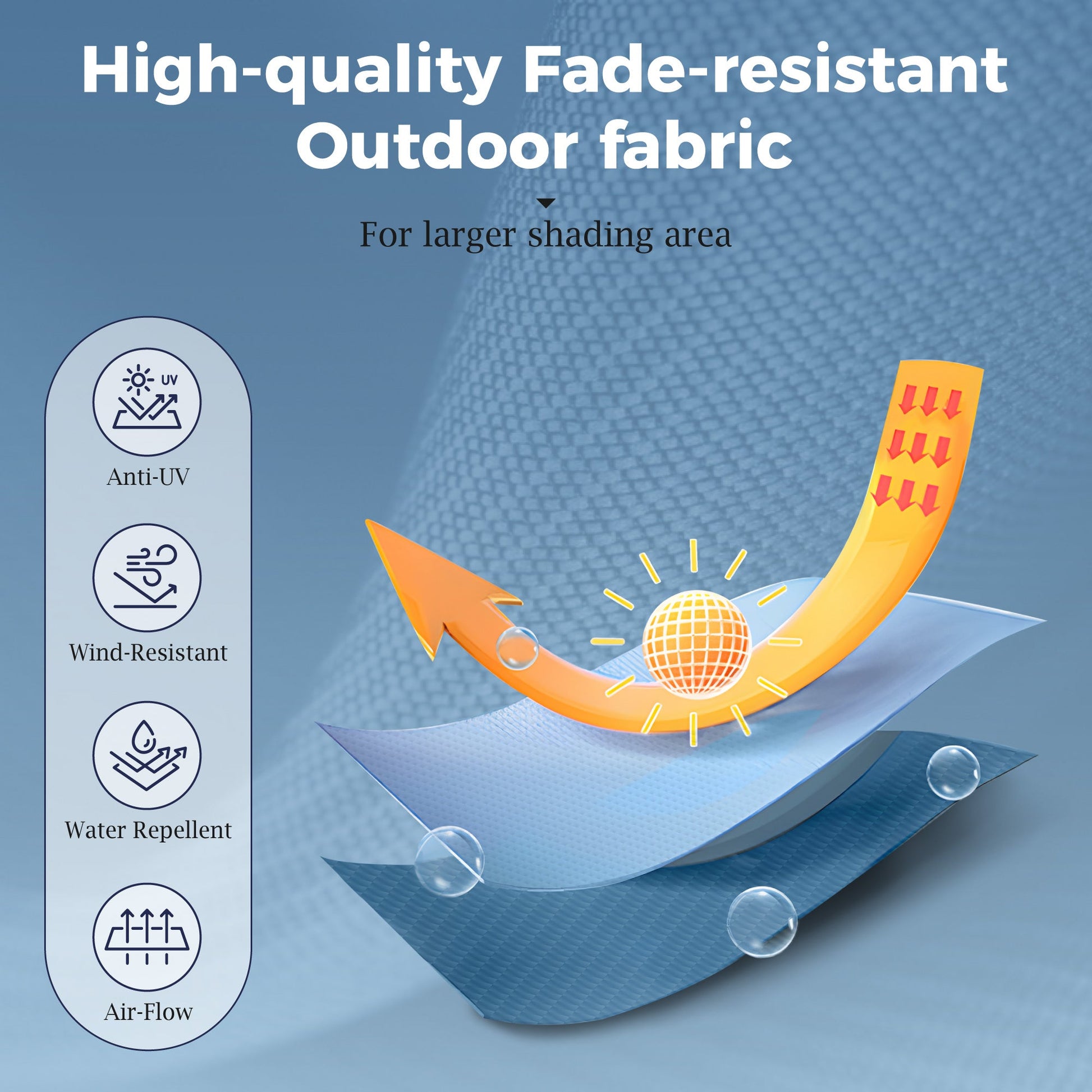 ¡¾Durable Polyester Fabric¡¿: The umbrella canopy is made of high-quality polyester fabric, which is UV-resistant, fade-resistant, and water-repellent, ensuring long-lasting performance and protection.