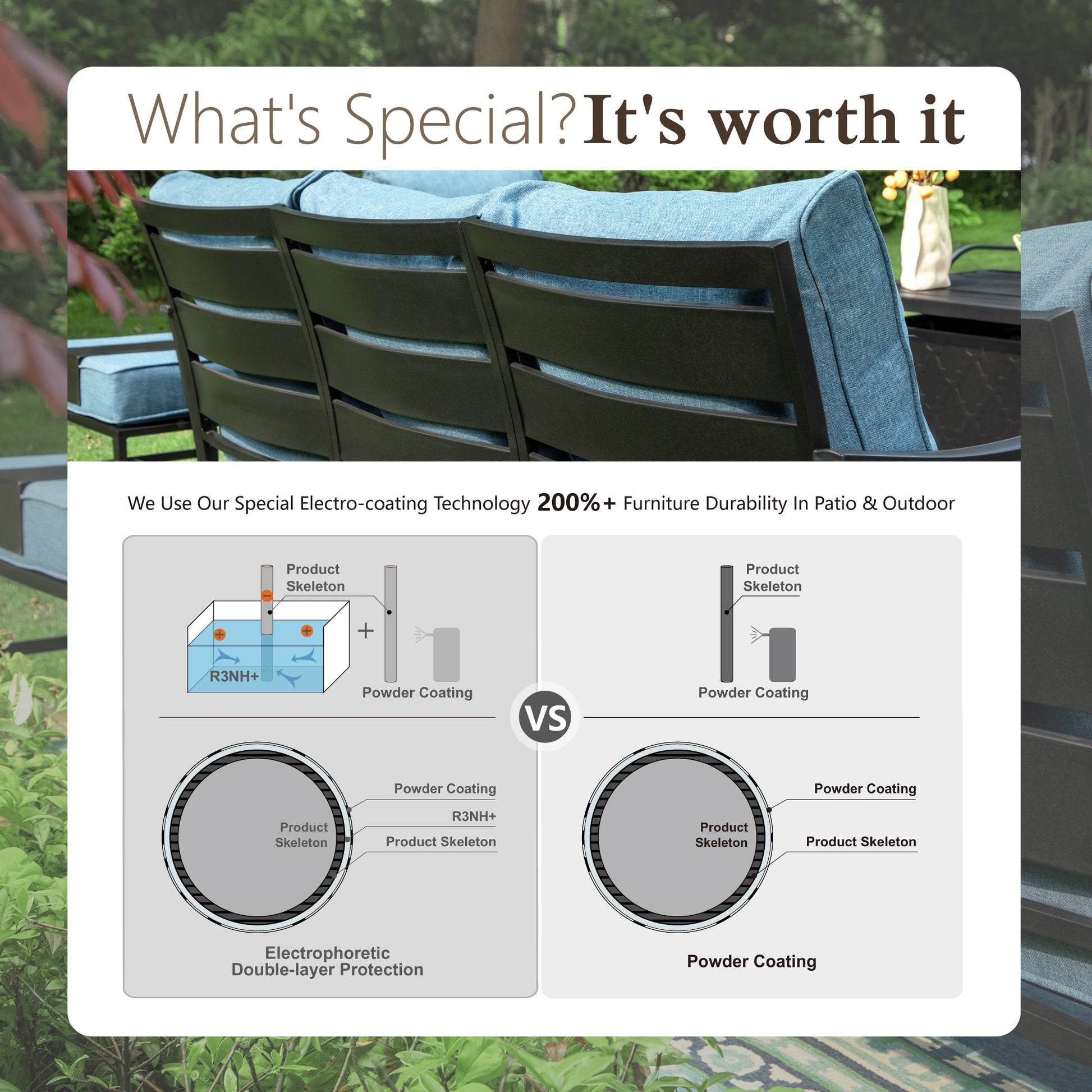 Alpha Joy 5 Seat Outdoor Patio Furniture Set Metal Conversation Set with Swivel Sofa Chairs, Navy Blue