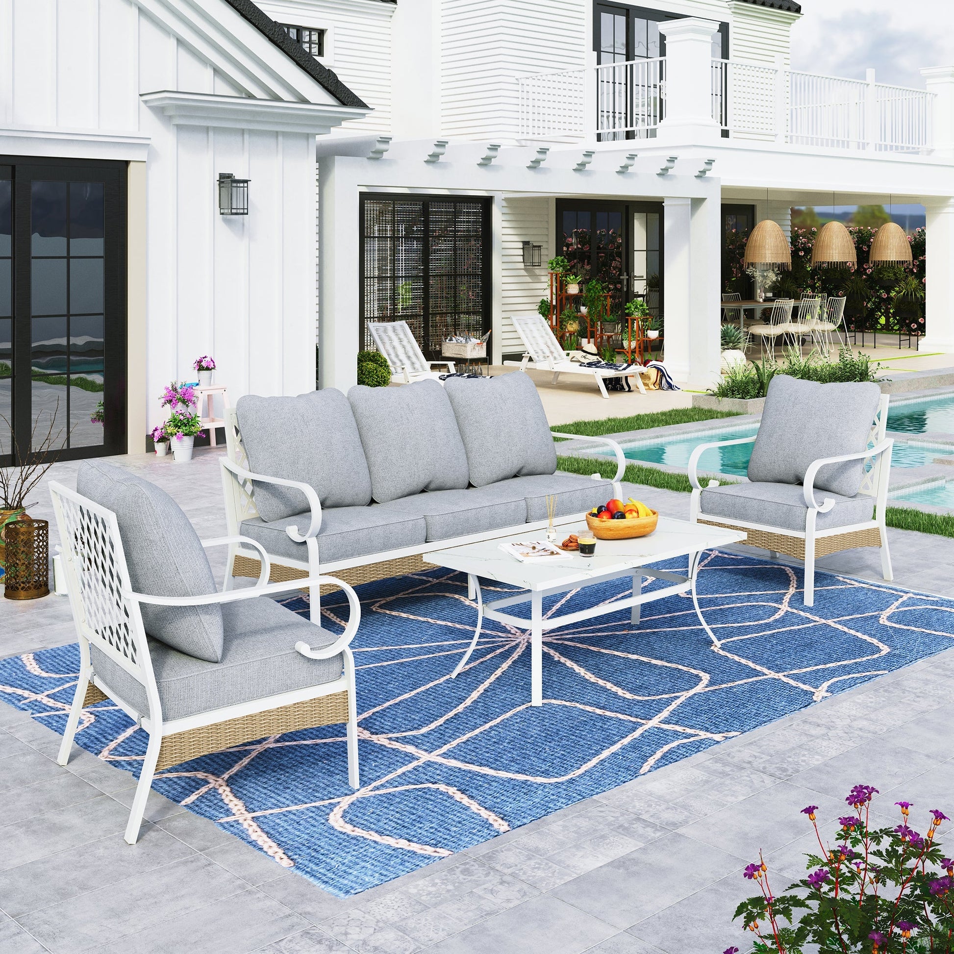 Sophia&William 4 Piece Patio Conversation Set Outdoor Furniture Sofa Set with Fixed Chair, Light Gray