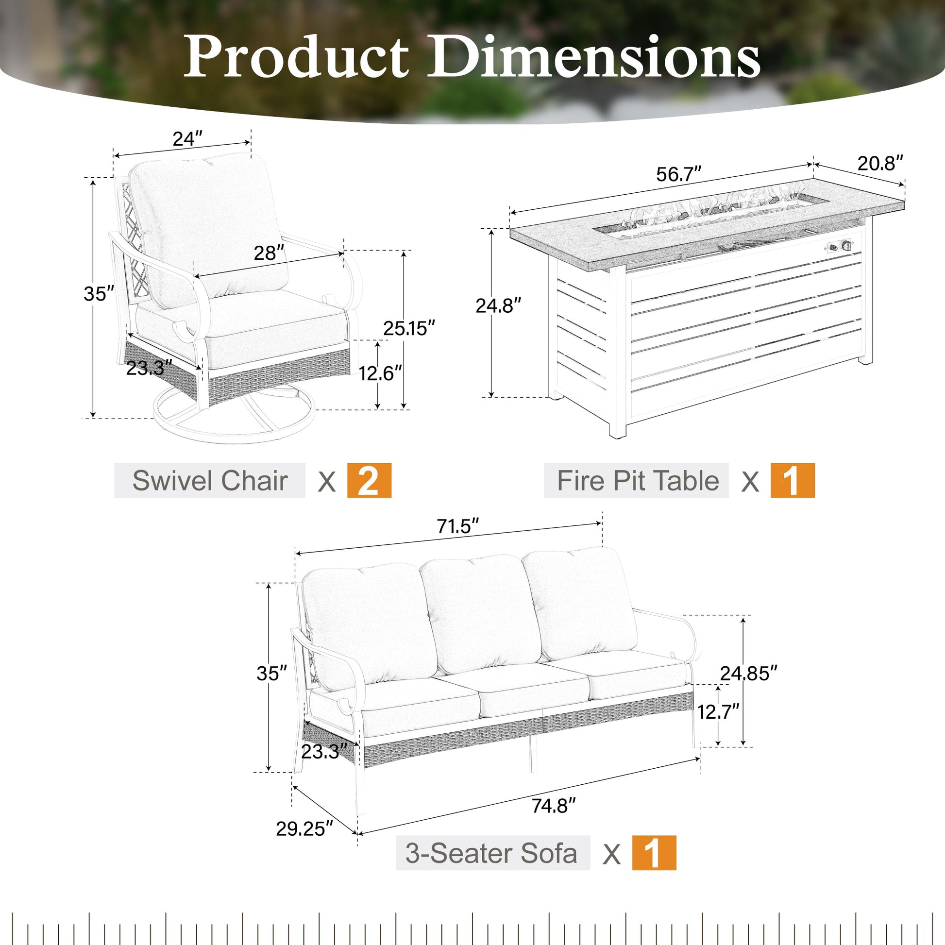 Sophia&William 5-Seat Patio Conversation Set Outdoor Furniture Sofa Set with 56" Fire Pit Table, Beige