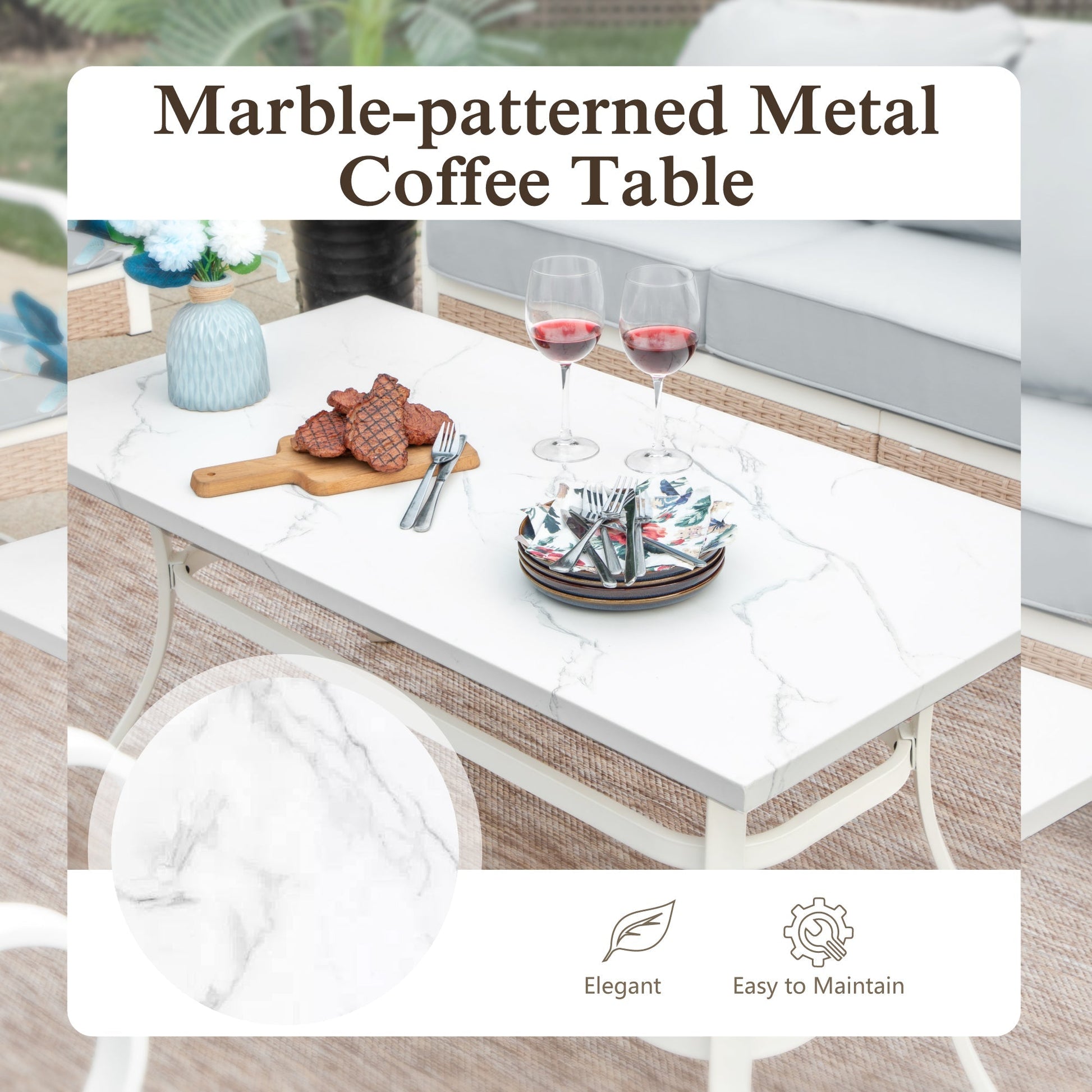 Our Sophia&William Patio Conversation Set is the perfect match for your outdoor Garden, Poolside, Balcony and any other outdoor area. We select steel frame and covered with a coating on the surface, designed to be rust-resistant and long-lasting, to ensure that your conversation set can last for many years. The table's smooth frame and faux-marble surface make for an easy-to-clean table that can be wiped in seconds. Different from the market, our seat cushion uses 28D high resilience sponge and Olefin fabric, oil resistant and fade-resistant. When you sit on it, it will eliminate the fatigue of your day. Don't hesitate, take this perfect patio conversation set to your family!