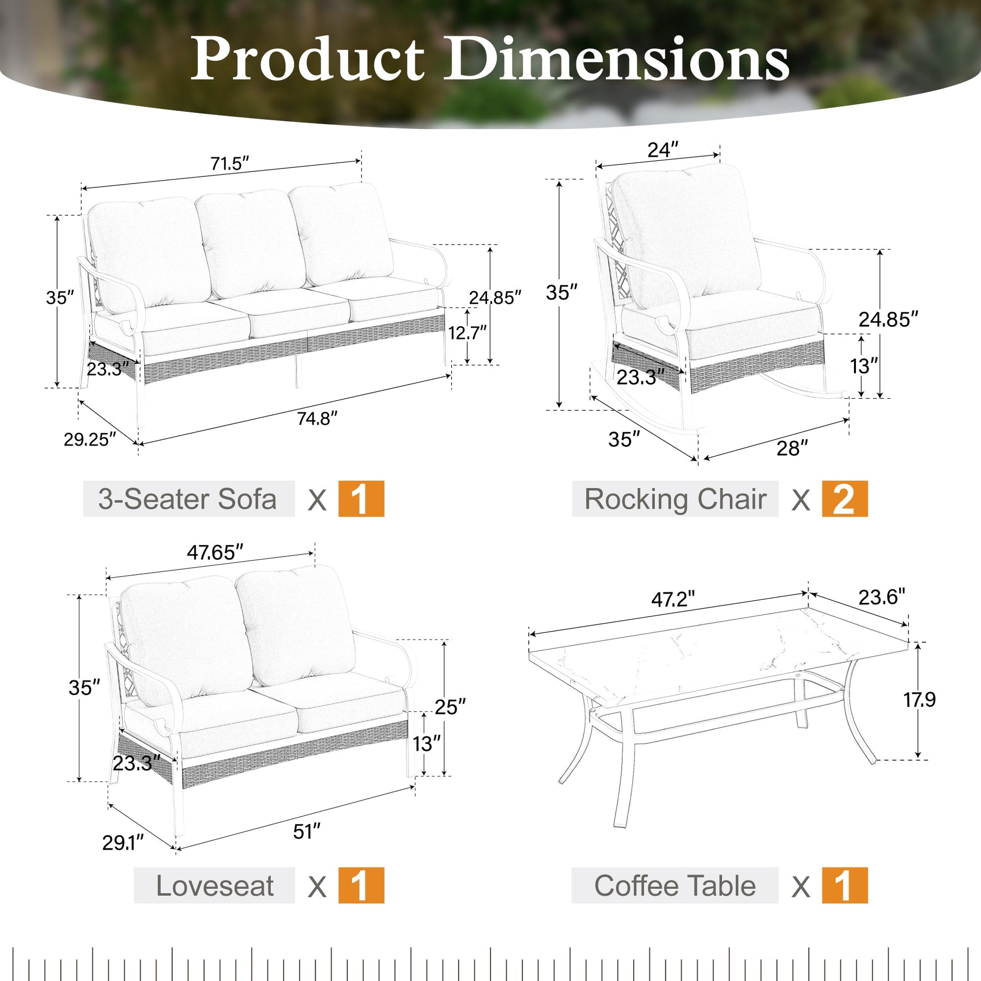 Sophia&William 6 Piece Patio Conversation Set Outdoor Furniture Loveseat Sofa Set with Rocking Chair, Light Gray