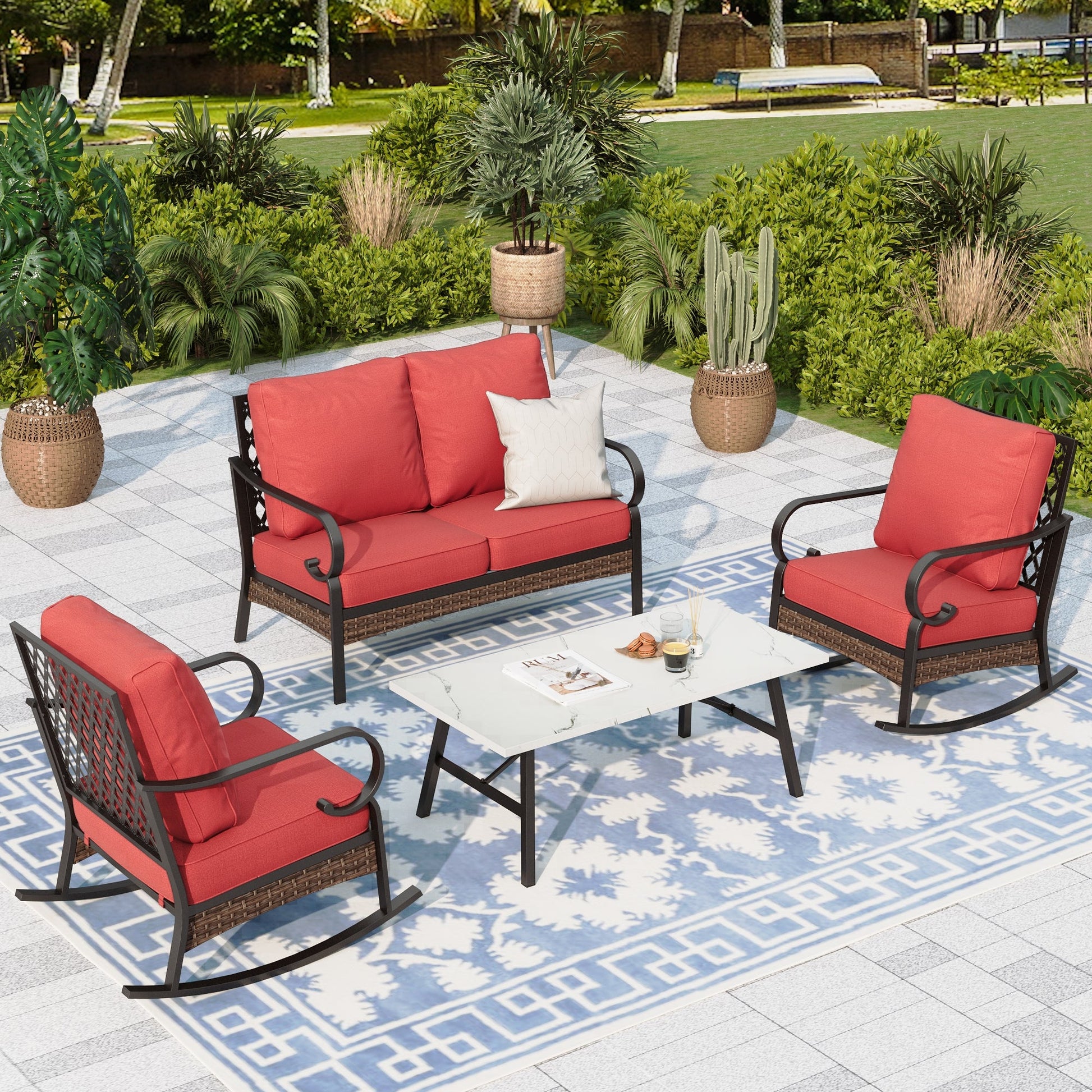 Sophia & William 4 Seat Patio Conversation Set,Outdoor Furniture Set with Rocking Chairs & Loveseat, Red