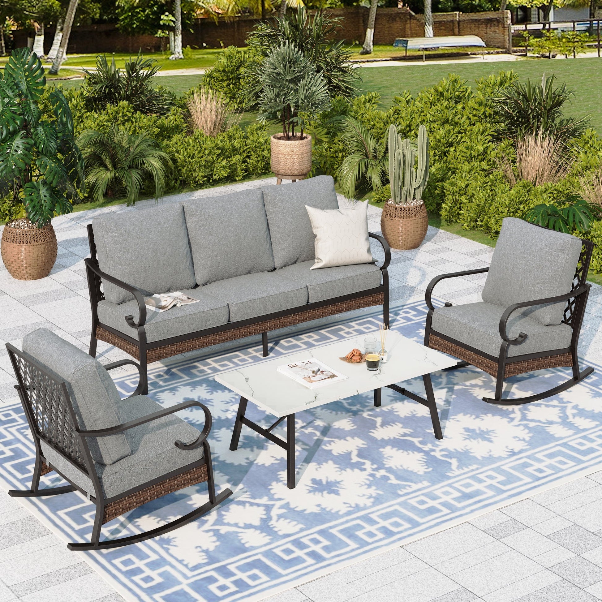 Sophia & William 5 Seat Patio Conversation Set,Outdoor Furniture Set with Rocking Chairs, Gray