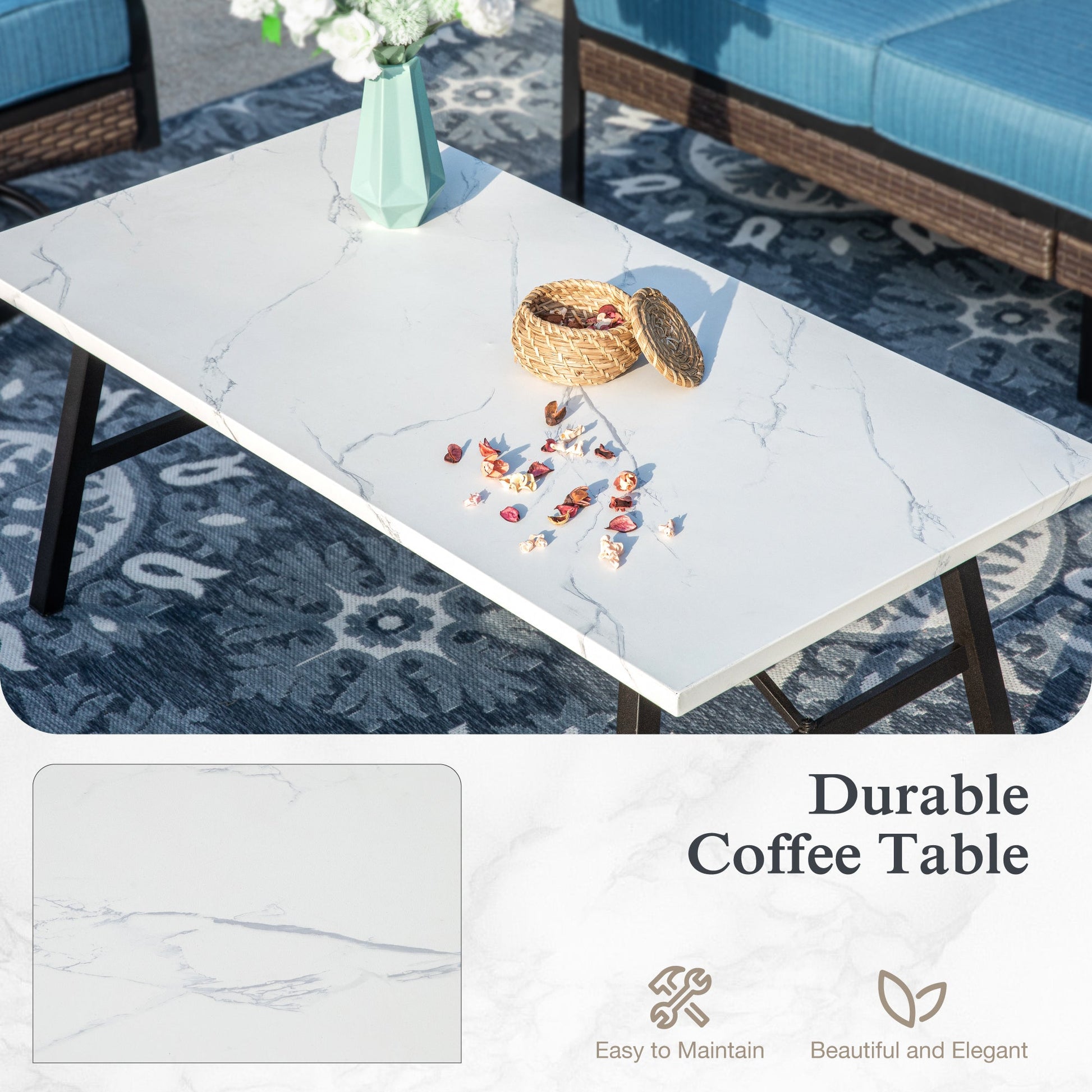 This Patio Furniture Set is the perfect match for your outdoor Garden, Poolside, Balcony and any other outdoor area. We select steel frame and covered with powder-coating & e-coating technique on the surface, designed to be rust-resistant and long-lasting, to ensure that your conversation set can last for many years. Different from the market, our seat cushion uses 28D high resilience sponge and Olefin fabric, oil resistant and fade-resistant; 28" extra wide backrest matches your body better. When you sit on it, it will eliminate the fatigue of your day. Rocking Sofa can move back and forth within a range of 10¡ã to 20¡ã, which brings you a really comfortable relax time. Don't hesitate, take this perfect patio conversation set to your family!