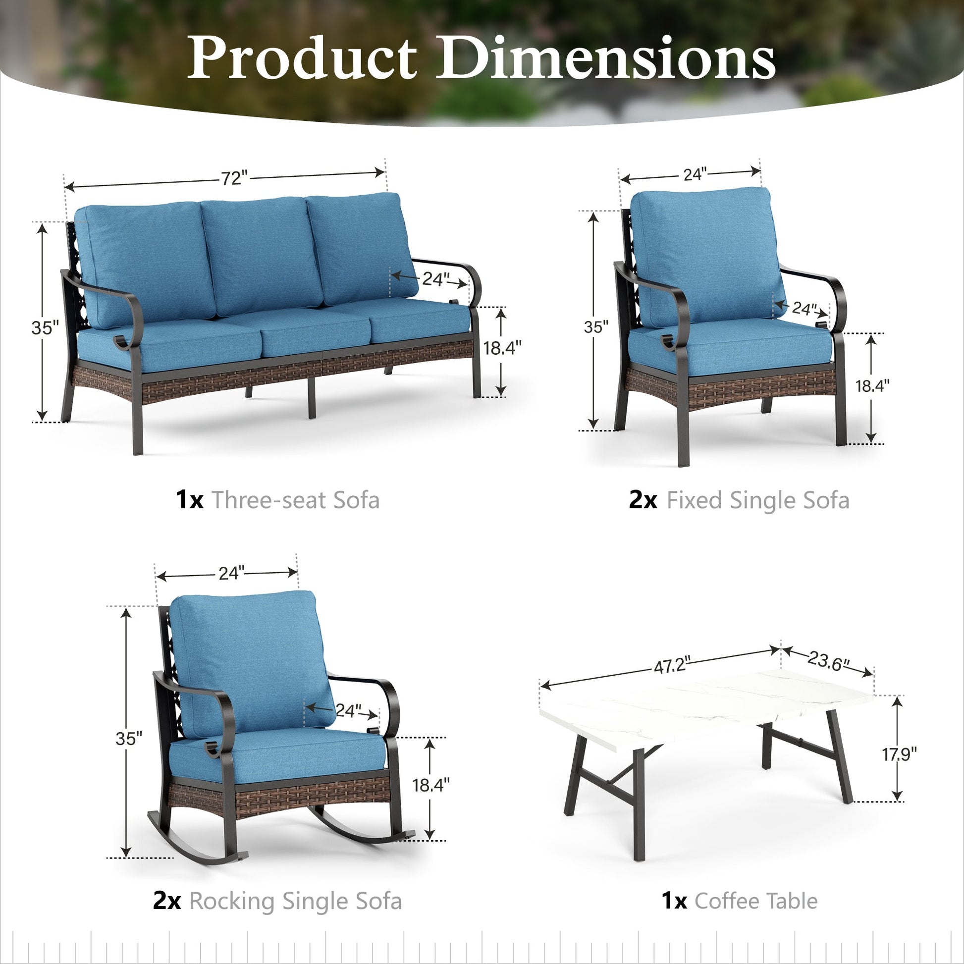 Sophia & William 7 Seat Patio Conversation Set,Outdoor Furniture Set with Rocking Chairs & Fixed Chairs, Navy Blue