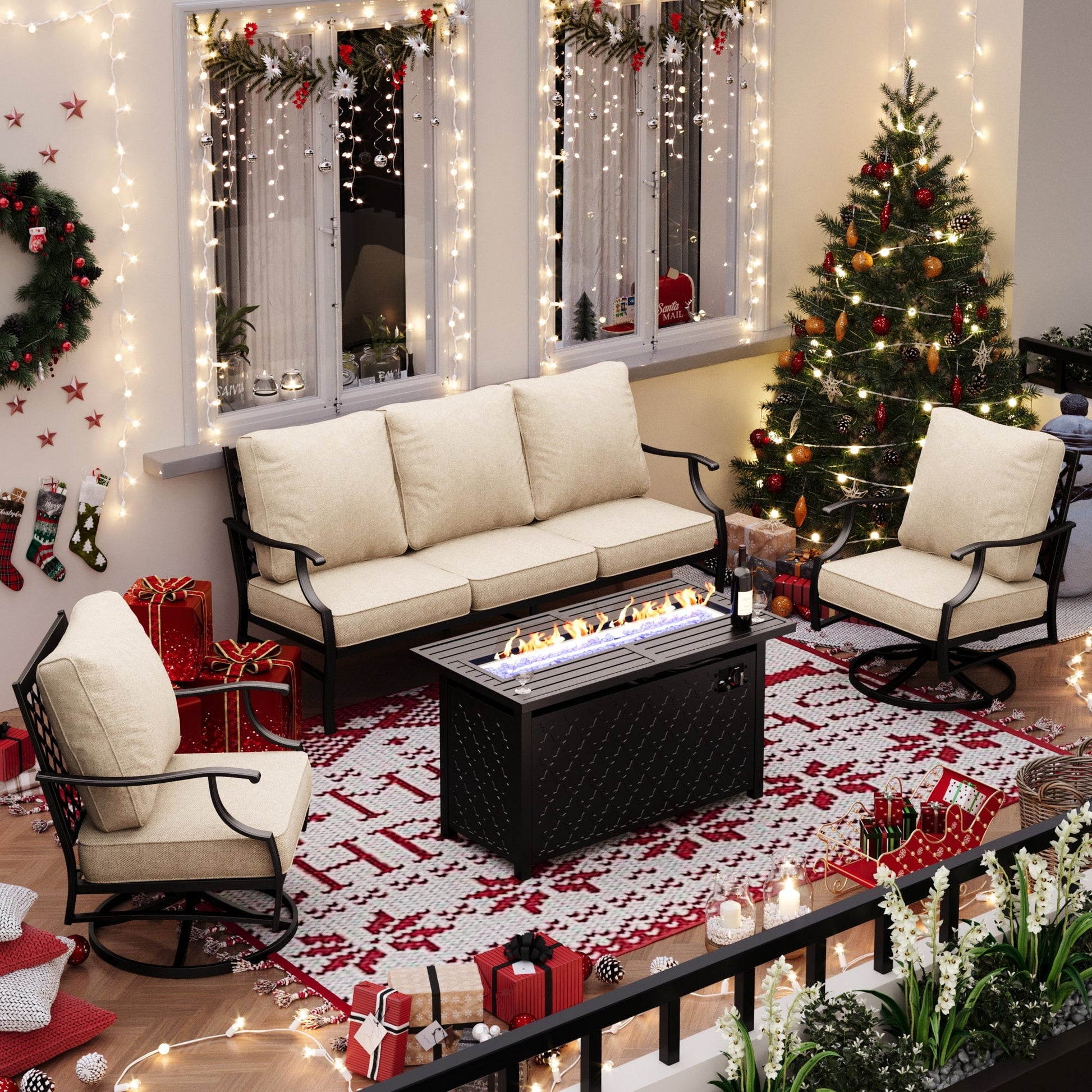 Sophia&William 4 Piece Patio Outdoor Furniture Set Conversation Sofa Set with 45" Fire Pit Table, Beige