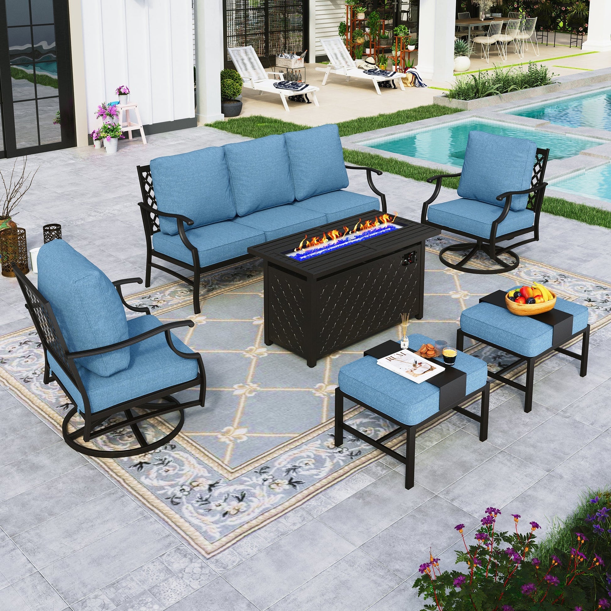 Sophia&William 6 Piece Patio Conversation Set Outdoor Furniture Sofa Set with 50,000BTU Fire Pit Table, Ottomans, Navy Blue